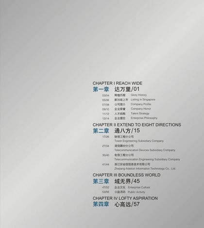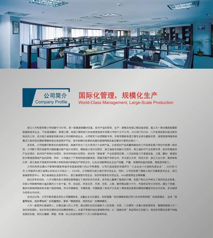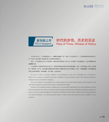 浙江八方電信有限公司創(chuàng)建于1997年,是一家集通信器材設備、軟件產品的研發(fā)、生產、銷售及電信工程設備安裝、施工為一體的集團型國家級高新技術企業(yè)。下設通信器材、鐵塔工程、電信工程和浙江安迪信信息技術有限公司四個分子公司。2004年7月23日,八方電信在新加坡主板市場成功上市,成為浙江省首家在新加坡上市的高科技企業(yè)。公司現有百余項國家專利,并具有國家電信工程專業(yè)承包壹級資質、通信信息網絡系統(tǒng)集成乙級資質,是目前國內發(fā)展較迅速的通信網絡設備及解決方案供應商之一。 銘陽廣告公司作為八方電信集團主要的平面設計業(yè)務合作商,先后為其做過畫冊設計、期刊設計、工廠環(huán)境設計、辦公及車間內企業(yè)文化宣傳設計等,產品及服務受到八方電信集團各部門一致好評。