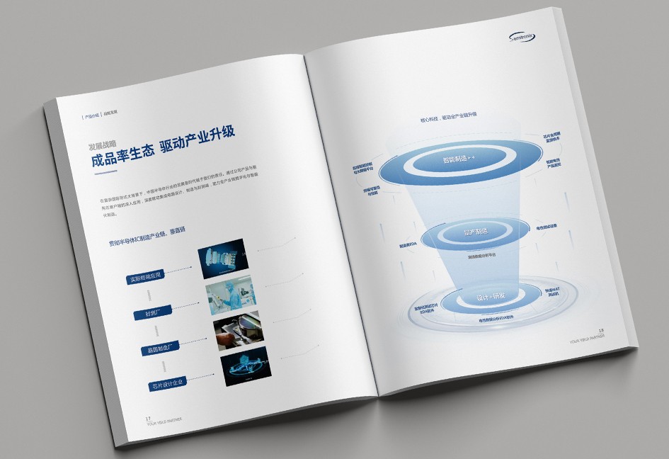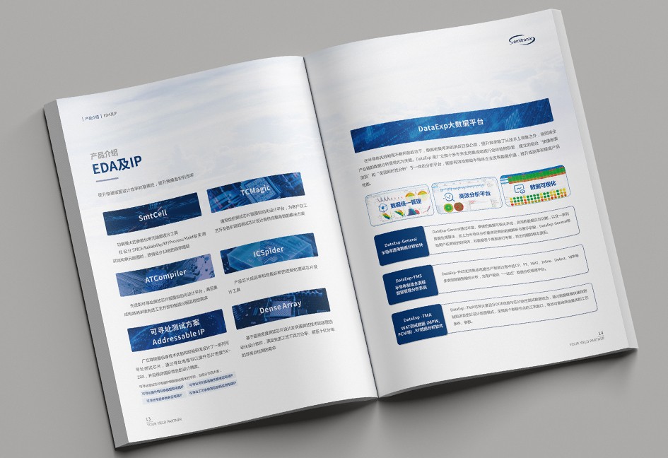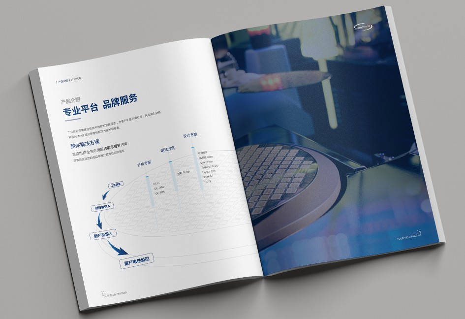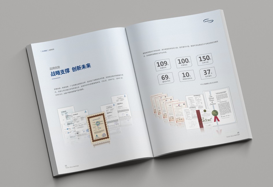 廣立微畫冊設(shè)計以“數(shù)之所指,芯之所向”為主題,分公司簡介、品牌優(yōu)勢、公司歷程、產(chǎn)品路線、產(chǎn)品介紹、戰(zhàn)略發(fā)展、社會責(zé)任幾個單元依次展開,圖文并茂,簡潔大氣,科技感十足!