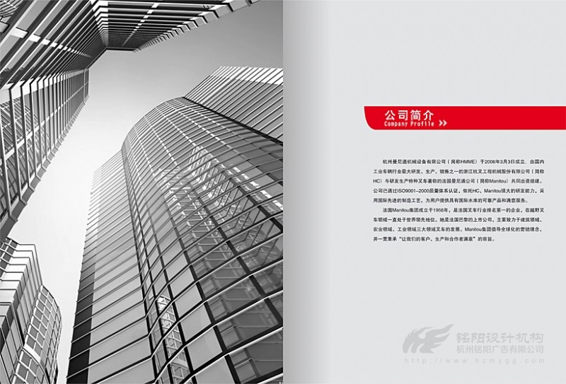 杭叉集團位于杭州青山湖工業園,中國大企業集團競爭力500強、中國制造業500強,銘陽廣告公司很榮幸參與集團畫冊設計、產品 攝影、車貼設計制作、展會海報設計等。